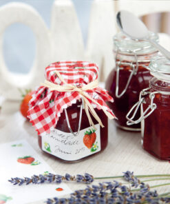 Kleurrijke papieren stickers, deels met glitters of reliëf. Formaat vel 76x120mm. Aantal vel 2. Motief wekpotjes.
