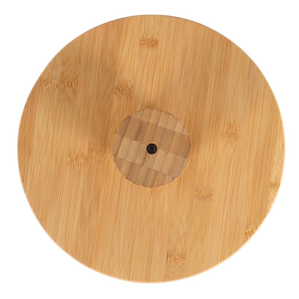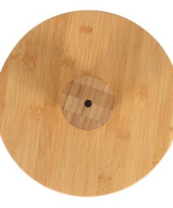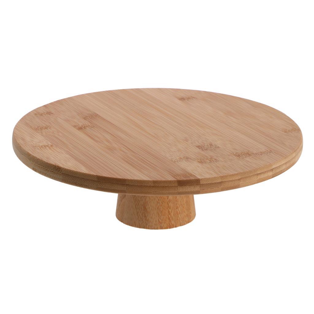 Bamboe serveerplank op hoge voet. De serveerplank is 9 cm hoog en heeft een diameter van 28 cm.