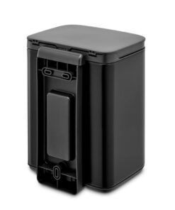 Een kleine prullenbak nodig, die groot is in stijl? DeBrabantia Bo afvalemmer 4 liter is het helemaal! Past in het kleinste hoekje, maar kan ook aan de muur hangen. Het handige deksel opent gemakkelijk vanaf de linker-, rechter- én voorkant. Je hoeft dus nooit meer met je arm te draaien om iets weg te gooien. Mooi van buiten en van binnen!