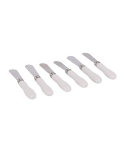 Voor het stijlvol serveren van broodmaltijden of tafelbroodjes als bijgerecht geef je elke tafelgast een eigen botermesje. Deze zesdelige set is gemaakt van 18/8 roestvrij staal met een porselein handvat, wat extra klasse uitstraalt. De mesjes zijn speciaal ontworpen om brood mee te smeren: kort en met een afgerond lemmet, om het brood niet te scheuren.
