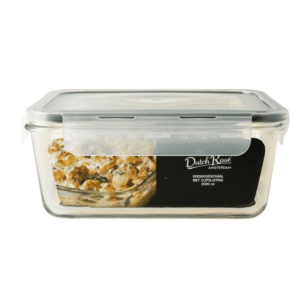 De vershoudschaal van Dutch Rose is perfect om je maaltijd vers te houden. De deksel heeft 4 clips die er voor zorgen dat de vershouddoos luchtdicht en lekvrijblijft. De schaal is gemaakt van extra hard borosilicaatglas en is hittebestendig tot wel 290 graden. Ook kan de schaal in de vaatwasser en diepvries en is hij zonder deksel oven- en magnetronbestendig. De plastic deksel is BPA vrij en heeft een zwarte sluitring. De schaal heeft een inhoud van2 liter en heeft een afmeting van23 x 17.5 x 9.5 cm.