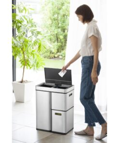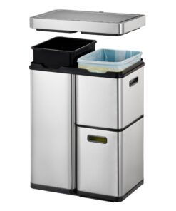 Deze prachtige prullenbak is niet alleen functioneel, maar ook stijlvol en milieuvriendelijk. Met een inhoud van 60 liter, verdeeld over 3 bakken van 30 + 15 + 15 liter, biedt deze prullenbak voldoende ruimte om uw afval te scheiden en te recyclen.