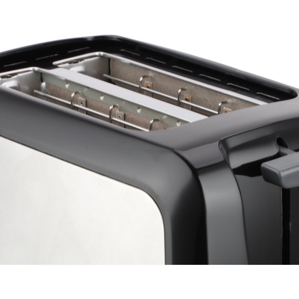 Deze broodrooster heeft 2 broodsleuven voor 2 sneetjes brood per roostercyclus. Voorzien van een annuleerfunctie, uitneembare kruimellade en opwarmfunctie. Dankzij de automatische centreerfunctie blijven de sneetjes brood altijd gecentreerd, zelfs bij verschillende broodmaten of -diktes, voor een ideaal bruiningsresultaat. Naast het eenvoudig roosteren van sneetjes toast, kan deze broodrooster bijvoorbeeld ook broodjes ontdooien of opwarmen. Hiervoor heeft het apparaat extra instelknoppen aan de zijkant. Dankzij de zeven eenvoudig instelbare bruiningsniveaus kun je je toast altijd precies zo roosteren als je zelf wilt. Deze broodrooster in zwart met roestvrijstalen applicatie is een blikvanger in elke keuken zonder opdringerig te zijn.