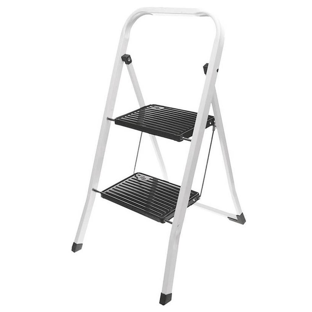 Deze stevige keukentrap met 2 treden is gemaakt van metaal. Het keukentrapje heeft anti-slip voetjes zodat hij stabiel op de grond staat. De trap heeft een afmeting van 47 x 90 cm wanneer hij ingeklapt is. Uitgeklapt is de huishoudtrap 47 x 53 x 83 cm.