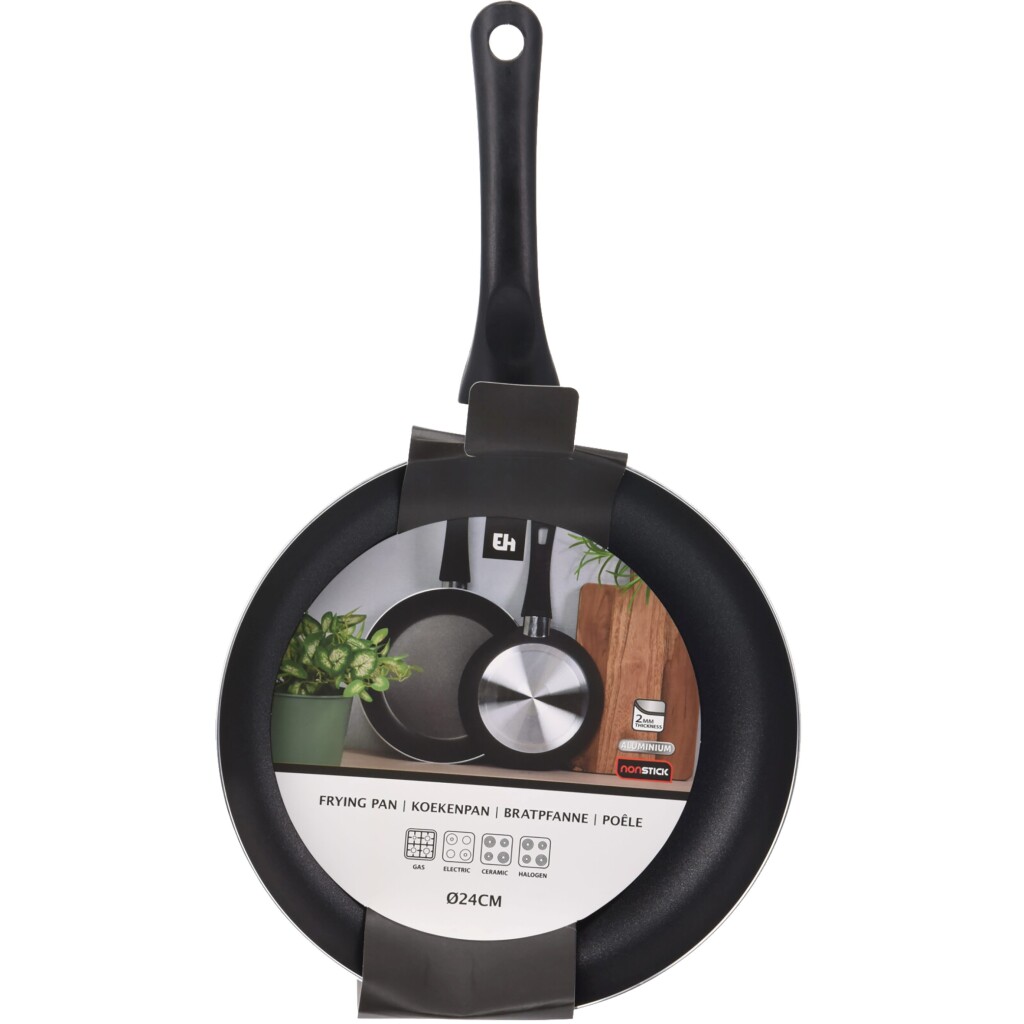 Excellent Houseware aluminium koekenpan met een doorsnede van 24 cm en 4,3 cm hoogte. Geschikt voor gas, electra, ceramisch en halogeen koken. Kleur: zwart.