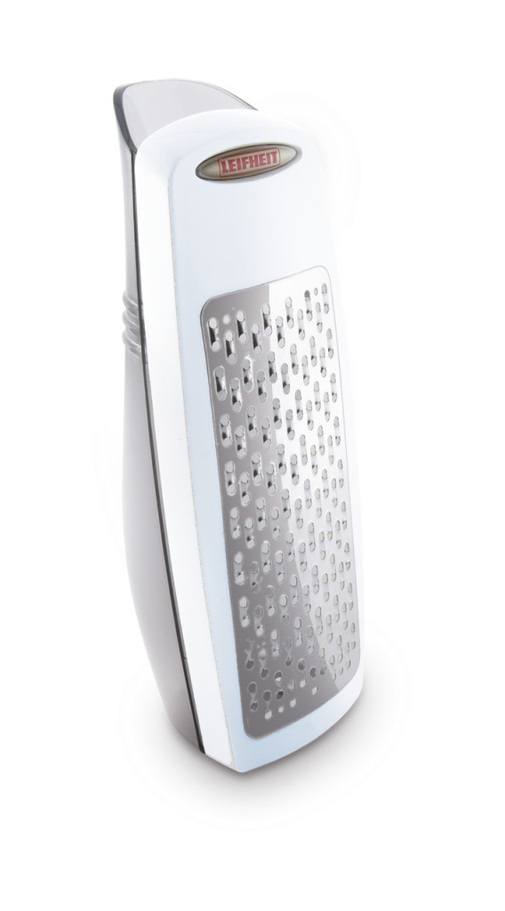 Op traditionele raspen kun je alleen in één richting raspen, dat kost dus twee keer zoveel tijd. De parmezaanrasp van Leifheit heeft een speciaal snijvlak, dat raspen in twee richtingen mogelijk maakt: daardoor rasp je Parmezaanse kaas heel eenvoudig en dubbel zo snel. De geraspte kaas valt in een geïntegreerde beker. Door de bijzondere vorm van deze beker kun je de geraspte kaas exact doseren. Bijzonder handig en decoratief design. De rasp ligt goed in de hand en kan liggend of staand worden bewaard. Met opvangbeker, ook geschikt voor bewaren van restjes kaas. Vaatwasserbestendig.