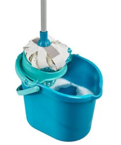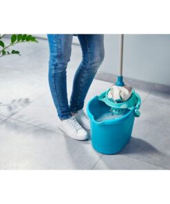 Praktisch, handig en klaar voor onmiddellijk gebruik. Deze set bevat alles wat u nodig hebt voor moeiteloze vloerreiniging.Het bestaat uit een emmer van 12 liter met een wringer, waardoor de dweil comfortabel kan worden uitgewrongen zonder gedoe en zonder handen in vuil water.Ook praktisch: het systeem heeft een driedelige handgreep die is uitgerust met een praktische ophanglus.Dus het kan aan de muur worden opgeslagen om ruimte te besparen.De ultraabsorberende buitenstrips van de Power Mop zijn gemaakt van 100% microfiber en kunnen vuil en vuil water bijzonder goed absorberen.Met zijn Power Scrub-strips zorgt hij ervoor dat zelfs hardnekkig, opgedroogd vuil geen kans maakt.Stof en haar worden geabsorbeerd door de power pick-up strips.Dankzij de extra lange, flexibele strepen beweegt de mop moeiteloos rond elk obstakel en reinigt trappen net zo effectief als grote oppervlakken – bijvoorbeeld tegels of stenen vloeren.Zodat de verwisselbare dweilkop achteraf hygiënisch schoon is, kan deze op 60° C worden gewassen.De Italiaanse schroefdraad van het handvat zorgt voor een stabiele verbinding tussen het handvat en de dweilkop en past op alle dweilkoppen uit de Power-, Classic- en Cotton-serie van Leifheit.