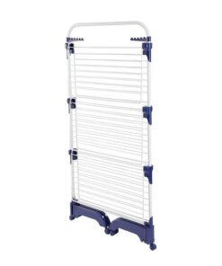Met een sta-oppervlak van max. 76,5 x 70 cm past hij bijna in elke ruimte.Drie droogvleugels bieden 42 meter drooglengte. Zekunnen afzonderlijk worden uitgeklapt zodat de droogtoren op maat kan worden gemaakt voor het drogen van lang wasgoed.Dankzij de 6 licht lopende wieltjes kan deze droogtoren gemakkelijk in alle richting verplaatst worden. Twee bijgeleverde kledinghangerhouders bieden extra droogruimte voor elk 5 kledinghangers. Ideale droogtoren voor huishoudens met beperkte (droog)ruimte.