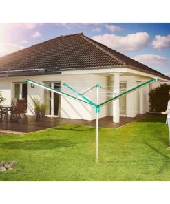 Ideaal voor iedereen die veel wast en het wasgoed in de frisse lucht wil drogen: de droogmolen Linomatic 600 Deluxe. Wie hem koopt, profiteert van zijn gebruiksgemak en de lijnlengte van 60 m, met ruimte voor zes wasmachineladingen. Bovendien is hij uitgerust met 8 haken voor kleerhangers aan de eindpunten van de draagarmen. Zo wordt nog meer droogoppervlak geboden om wasgoed zoals overhemden en blouses voorzichtig te kunnen drogen. Hij kan eenvoudig worden geopend met het Easy-Lift-systeem. Het trekkoord wordt automatisch opgetrokken, zodat het beschermd is tegen beschadiging. Ook het sluiten van de waslijn van Leifheit is heel eenvoudig. Want door de Easy-Close-Comfort is het mogelijk om de droogmolen helemaal zonder bukken te sluiten. De lijnen worden daarbij automatisch in de draagarmen getrokken en zijn daar beschermd tegen vocht en vuil. Om de complete droogmolen van Leifheit te beschermen, is bovendien een beschermhoes van slijtvast materiaal inbegrepen. Daarnaast wordt een bodemhuls meegeleverd om in beton te zetten, om de droogmolen Linomatic 600 Deluxe direct te kunnen opzetten en gebruiken.