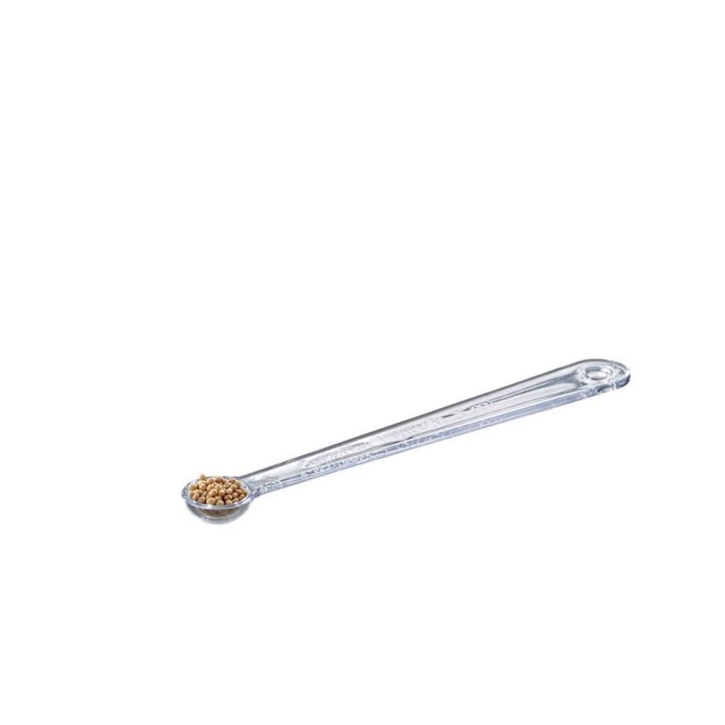 5 maatlepels van 1 ml, 5 ml, 15 ml, 50 ml en 100 ml. Geschikt voor de vaatwasser.