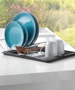 Met dit afdruiprek droogt je vaat supersnel en blijft je aanrecht droog. Het rekje staat op pootjes, zodat de vaat niet in contact komt met het vocht. Door de slim gekozen afmetingen past het rek makkelijk op het aanrecht en heb je toch erg veel opbergruimte. Het frame heeft een luxe Polytherm coating, waardoor de vaat niet wordt beschadigd en het rekje roestbestendig en antistatisch is.