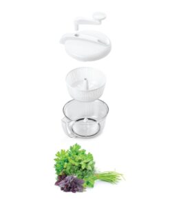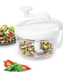 Met dit handige hulpmiddel maak je het jezelf erg gemakkelijk. Door de drie verschillende opzetstukken kun je een heleboel doen met dit apparaat. Er zit een mandje bij waar je groenten of sla in kunt centrifugeren, een set vlijmscherpe mesjes om van alles te kunnen snijden en er zit een garde bij. Hiermee kun je ook nog dressings of bijvoorbeeld een omelet bereiden.