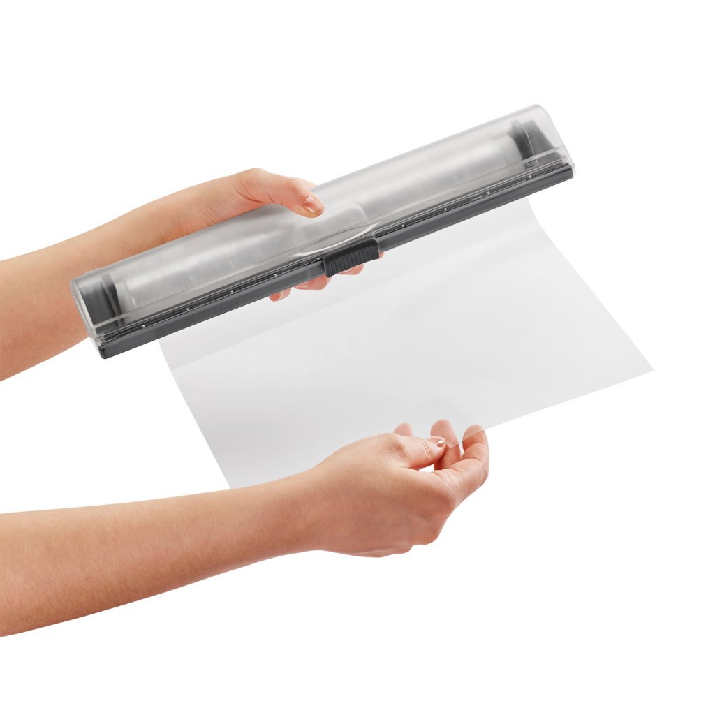 De Metaltex Kitchen Helpers X-Tra Roll foliehouderis een draagbare dispenser die snijdt met slechts één “klik”. Het is een handige en efficiënte roldispenser voor aluminiumfolie en vershoudfolie die precies snijdt met slechts één klik. Deze rollenhouder heeft een veersysteem dat automatisch opent wanneer je de grendel verschuift om deze te ontgrendelen, wat de gebruiker helpt tijdens het gebruik. De aluminiumfolie of folie is eenvoudig te verwijderen doordat de binnenbak een scherpe rand heeft, speciaal ontworpen om goed op de zijkant van de rol te passen. Twee extra kenmerken van X-Tra Roll zijn de interne verstelbare beugels, waardoor dit item plaats biedt aan rollen met een lengte van 20,5 cm tot 34 cm. Bovendien zorgen beugels ervoor dat twee X-TRA-rollen aan elkaar kunnen worden geklikt voor 2-in-1-functionaliteit, waardoor zowel folierol als vershoudfolie met één hand kunnen worden gebruikt.