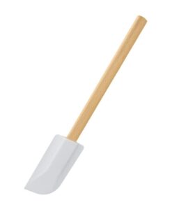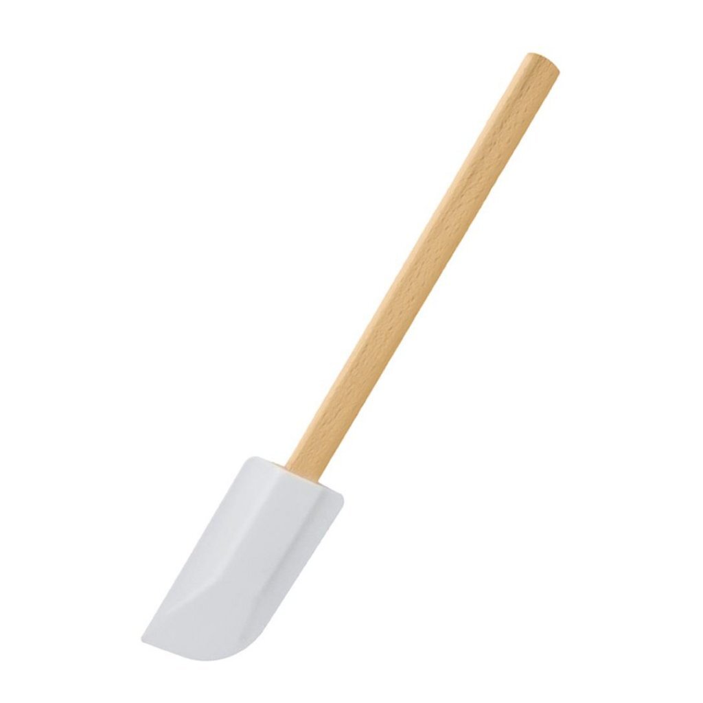 Metaltex pannenlikker met houten steel en wit kunststof uiteinde. Lengte: 30 cm.