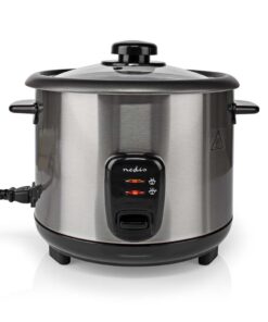 Met dezeNedis KARC115AL rijstkoker met roestvrijstalen behuizing van Nedis kun je in een mum van tijd de lekkerste rijst koken. Je hoeft je geen zorgen meer te maken over het te lang koken van de rijst, omdat de rijstkoer automatisch overschakelt op de warmhoudfunctie zodra de rijst is gekookt. De rijstkoker heeft een capaciteit van 1,5 liter en een vermogen van 500 Watt, waarmee je maximaal 5 porties rijst tegelijk kunt bereiden. Dit maakt de rijstkoker uitermate geschikt voor het bereiden van een diner voor het hele gezin. Natuurlijk kun je ook kleinere hoeveelheden rijst koken. De rijstkoker heeft een glazen deksel en een binnenpan met een antiaanbaklaag, zodat de rijst niet aan de pan blijft plakken. De binnenpan is uitneembaar, waardoor hij gemakkelijk kan worden schoongemaakt. De rijskoker wordt geleverd met een lepel en een maatbeker.