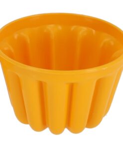 4 puddingvormen van Patisse, met een diameter van 7,5 cm en een inhoud van 100 ml. Gemaakt van stevig geel kunststof.