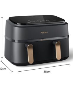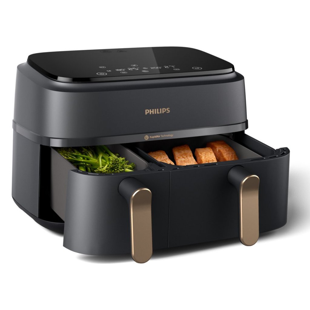 • Airfryer met 2 lades: de grote lade is perfect voor hoofdgerechten, frietjes en alles wat u het lekkerst vindt. Gebruik de kleinere lade voor bijgerechten, groenten en snacks.