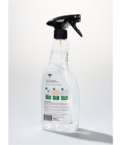 Bevat: water, waterstofperoxide, magnesiumsulfaat, laureth-sulfosuccinaat, citrusvruchten, sodiumhydrogen carbonaat, citroenzuur, appelparfum.Gebruiksaanwijzing:Spuit de spray 1-3 keer op het te desinfecteren oppervlak en laat het 30 seconden intrekken. Reinig het oppervlak vervolgens met een doek. Het oppervlak is nu gedesinfecteerd.VOLDOET AAN NORMERINGEN EN 1499 – EN 1500, CONFORM EG VERORDENING 1907/2006/EG