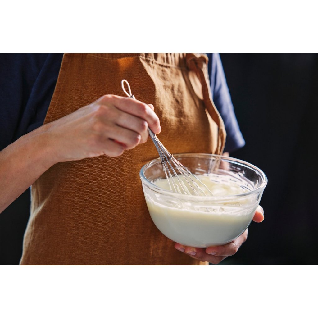 Pyrex glazen mengkom van 14 x 6 cm. Bestand tegen thermische schommelingen van -40°C tot 300 °C.