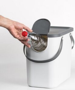 Verschillende emmers kunnen eenvoudig op elkaar worden gestapeld, zodat ze perfect kunnen worden gebruikt, zelfs in ruimtes met weinig ruimte. U kuntin één oogopslag zien welke prullenbak bij wat hoortdoor de stickers op de voorkant van het deksel.