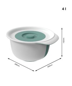 Deze praktische set combineert alles wat je nodig hebt om te bakken: twee hoogwaardige mengkommen in verschillende maten, een tweedelig deksel met spatbescherming, een comfortabele handgreep en een voet die niet wegglijdt op het werkblad. De kommen zijn daarom bijzonder geschikt om te roeren en te mixen en zijn een populaire hulp bij het bakken en koken. Stevige kom met antislipvoet Dankzij de ergonomische handgreep ligt de kom comfortabel in de hand en zorgt voor comfortabel werken. De antislipring op de vloer zorgt ervoor dat je ook bij het werken met de mixer stevig staat en dankzij de spatbeschermingsring ontstaan ??er geen vlekken op het werkblad. In de aparte kleine kom kunnen ingrediënten bijvoorbeeld apart worden afgewogen. Dankzij het deksel is de kom ook perfect voor het bewaren van voedsel.