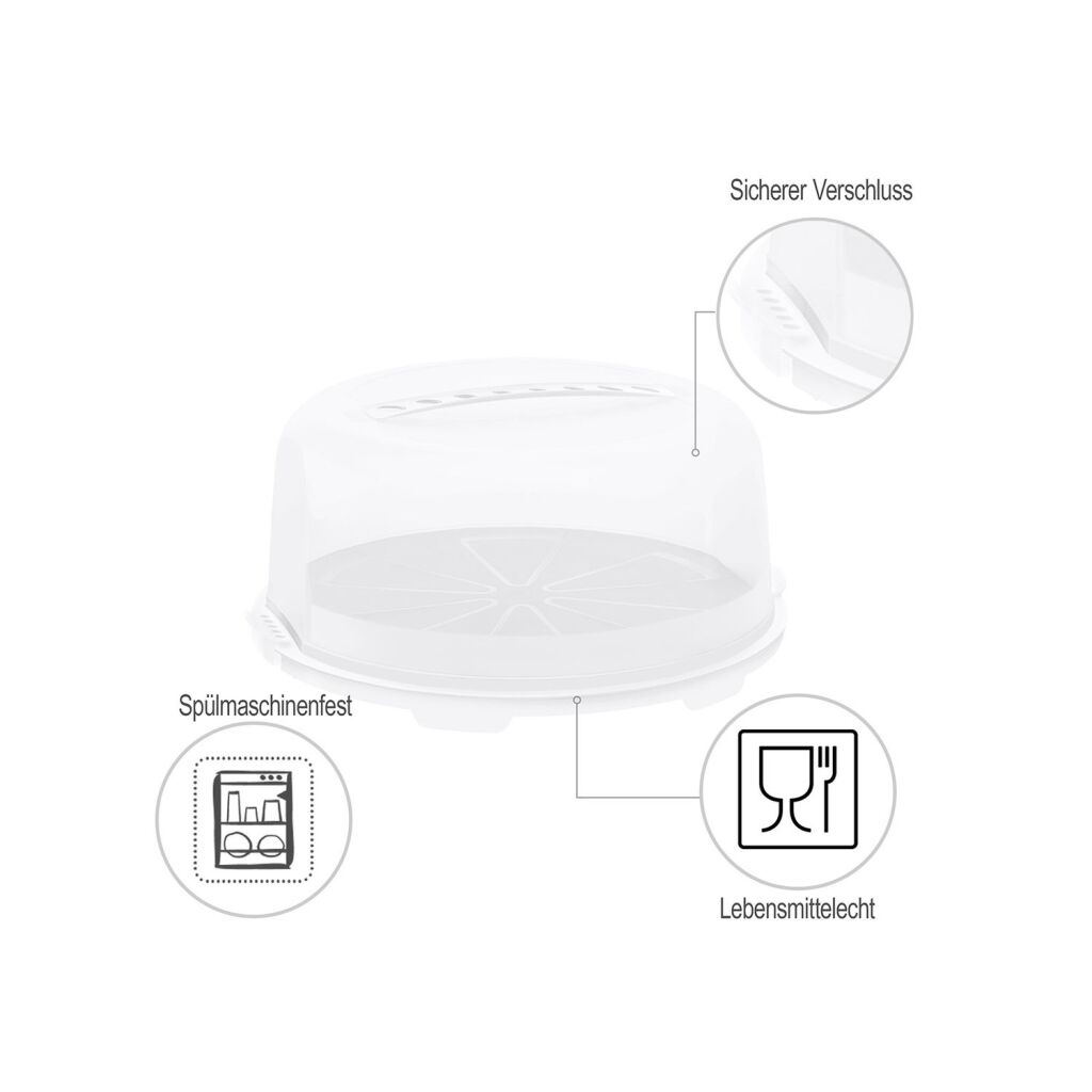 Er is altijd wel een reden om een ??taart te bakken – of het nu de verjaardag van je favoriete collega is, een picknick met het gezin of een barbecue met vrienden. Hoe vervelend als de liefdevol bereide decoratie ten prooi valt aan transport! De FRESH taartdoos zorgt ervoor dat je zoete lekkernijen onbeschadigd op hun bestemming aankomen. Taarten en taarten overleven zelfs een autorit of een ritje naar de picknickplaats zonder problemen, dankzij de veilige sluiting en het handige handvat. Tegelijkertijd worden de bakwaren beschermd tegen uitdroging, direct zonlicht en insecten. De praktische inkepingen aan de onderkant van de transportdoos maken het mogelijk om de taart daarna in dezelfde stukken te snijden. De afsluitbare taartvorm is ook ideaal voor het bewaren van taarten, quiches of pizza. Dankzij het transparante deksel kun je altijd zien wat erin zit.