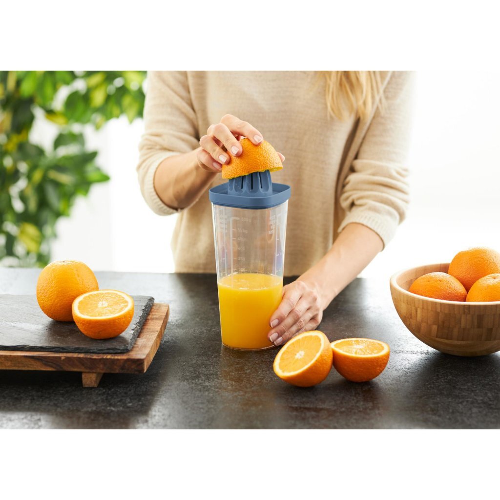 Het 5in1 keukenapparaat is de absolute allrounder onder de shakers. Schudden, meten, mengen of persen – alles is gemakkelijk met deze shaker. Het heeft verschillende schalen voor het meten van verschillende dingen, zoals water, meel, rijst en suiker. Het is de perfecte maat om direct in de shaker te mengen met een staafmixer. Tegelijkertijd past hij ideaal in het zijvak van de koelkast om sauzen, sappen en nog veel meer koel en veilig te houden. Dankzij de citruspers kunnen heerlijke vruchtensappen direct in het kopje worden bereid. Met het blenderhulpstuk kunnen vloeistoffen heerlijk romig worden geschud.