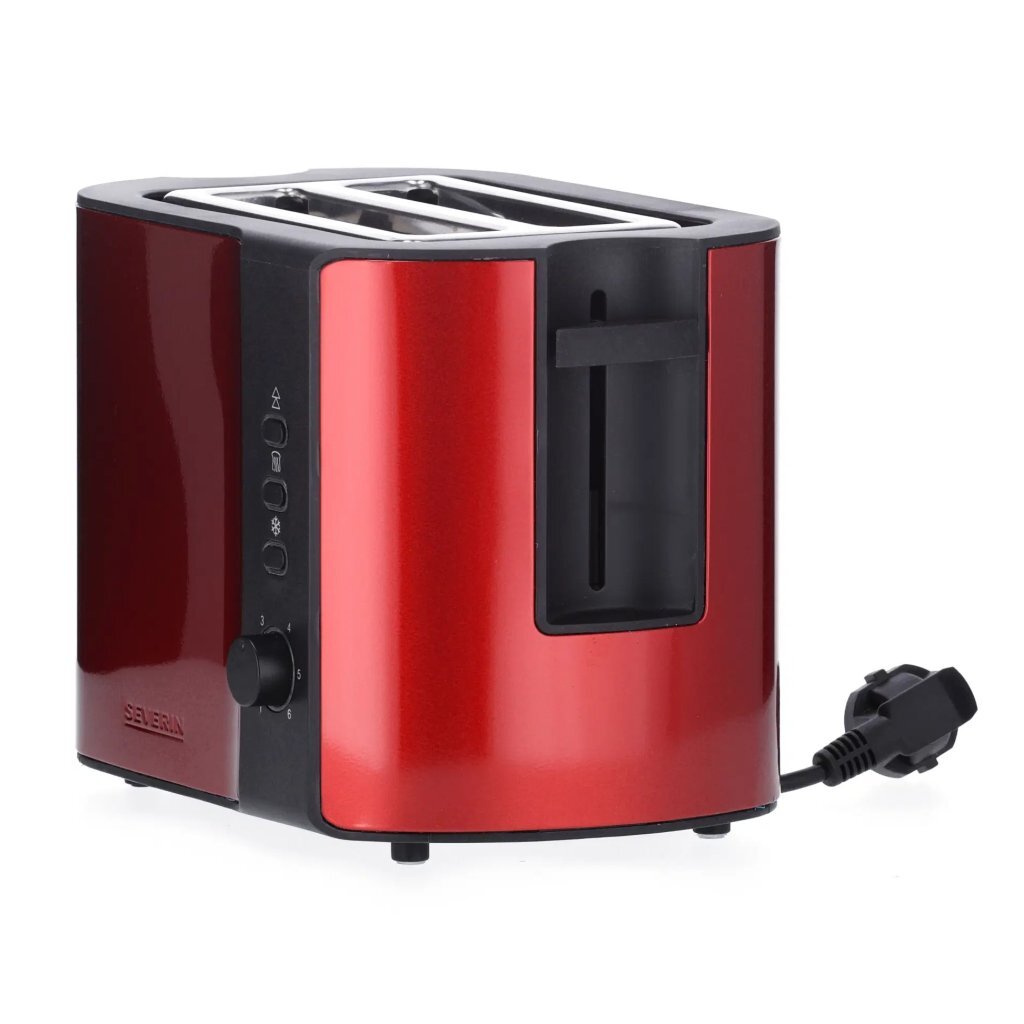 Moderne automatische broodrooster met warmte-isolerende behuizing van roestvrij staal en een vermogen van ca. 800 Watt. Door een handig opzetstuk kunt u broodjes in een handomdraai roosteren. U kunt handmatig instellen hoe bruin uw toast wordt. De broodrooster past door zijn afmetingen van 26,5 x 18 x 19,5 cm en een gewicht van ongeveer 1,5 kg in iedere keuken. Dankzij een handige kabelwinder kan het apparaat gemakkelijk worden opgeborgen. Mocht er eens een keer een snee brood in het apparaat vast blijven zitten, dan schakelt het apparaat zichzelf uit. Bovendien heeft hij ook nog een ontdooi-stand en een opwarm-stand zonder extra bruining.