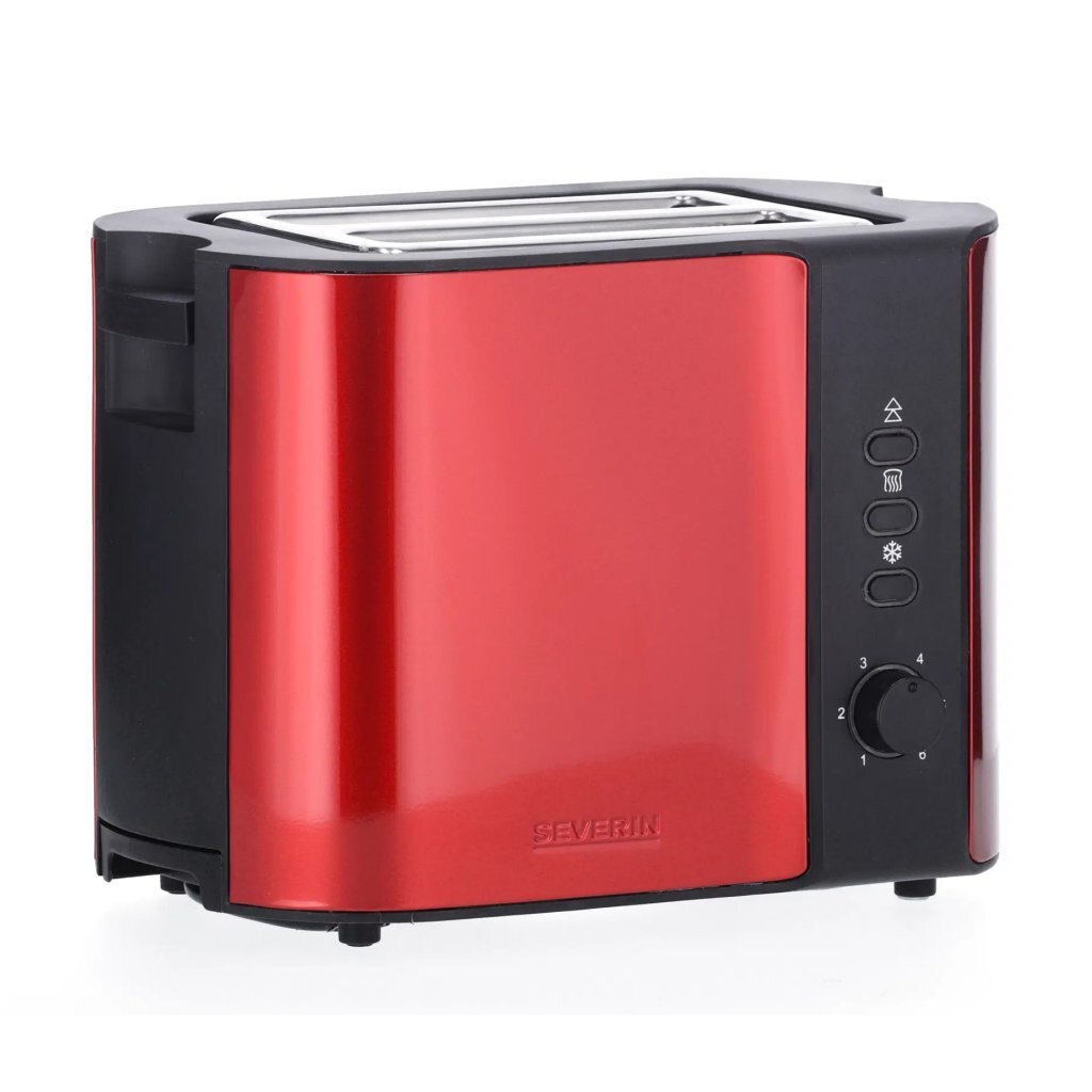 Moderne automatische broodrooster met warmte-isolerende behuizing van roestvrij staal en een vermogen van ca. 800 Watt. Door een handig opzetstuk kunt u broodjes in een handomdraai roosteren. U kunt handmatig instellen hoe bruin uw toast wordt. De broodrooster past door zijn afmetingen van 26,5 x 18 x 19,5 cm en een gewicht van ongeveer 1,5 kg in iedere keuken. Dankzij een handige kabelwinder kan het apparaat gemakkelijk worden opgeborgen. Mocht er eens een keer een snee brood in het apparaat vast blijven zitten, dan schakelt het apparaat zichzelf uit. Bovendien heeft hij ook nog een ontdooi-stand en een opwarm-stand zonder extra bruining.