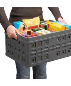 Lekker boodschappen doen met de Square vouwkrat met 46L opslag- en vervoersruimte. Een boodschappentas biedt vaak niet genoeg ruimte of ondersteuning voor je levensmiddelen. Sunware’s Square-kratten zijn daarom speciaal ontworpen voor het vervoeren en opbergen van levensmiddelen. Toch zijn er nog heel wat meer toepassingen te bedenken voor deze kratten. Denk bijvoorbeeld aan gebruik op het sportveld voor bidons en ballen etc., of op de camping voor de afwas en je kampeerspullen! De Square vouwkratten van Sunware zijn robuust en stevig en laten zich compact opbergen wanneer ze niet in gebruik zijn doordat ze eenvoudig inklapbaar zijn. Ideaal dus voor onderweg! De 46L Square vouwkrat is een groter model om nog meer boodschappen of (sport-, kampeer-) spullen te vervoeren. Door de twee handgrepen aan de zijkant is de krat makkelijk te tillen.