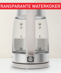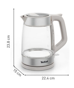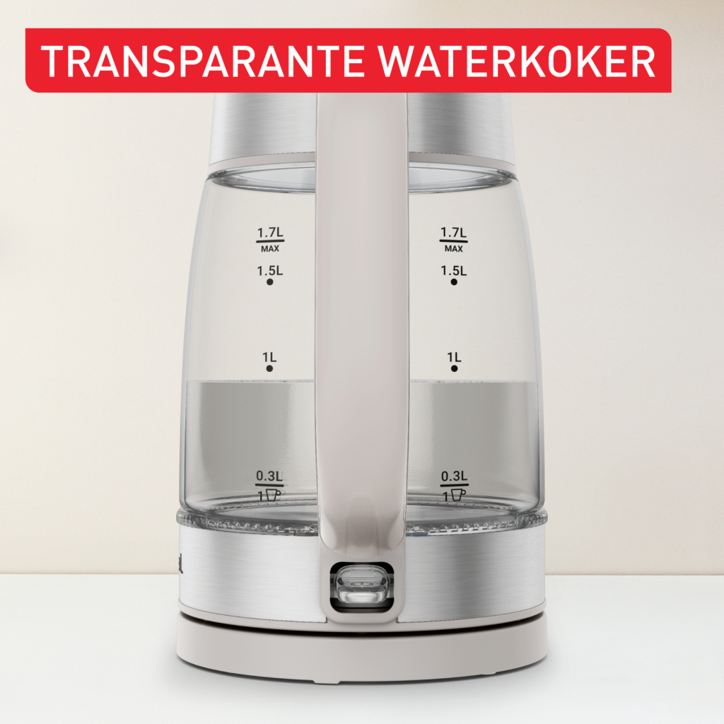 De glazen waterkoker van Tefal is gemaakt van kwalitatief glas met hoogwaardige metalen details en is voorzien van prachtige sfeerverlichting. Hij combineert een stijlvolle uitstraling met alledaags gebruiksgemak. Het transparante ontwerp met maatstrepen – inclusief een aanduiding voor 1 kopje – maakt nauwkeurig vullen gemakkelijk en bespaart je tijd. Dit elektrische pareltje heeft een ruime inhoud die ideaal is voor gebruik met familie en vrienden, en is ontworpen met een reeks aanvullende functies die het koken van water gemakkelijk maken.