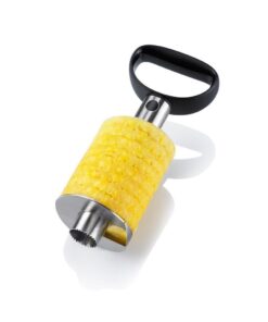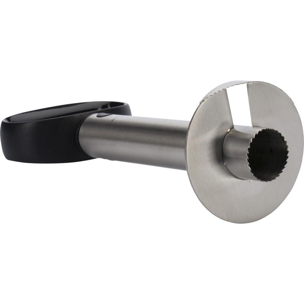 De praktische rvs ananassnijder van Westmark ontpit, schilt en snijdt hele ananasvruchten voor fijne fruitsalades, schotels, desserts en muesli in slechts één handeling. Door de snijder in de ananas te draaien, snijdt u spiraalvormig in het vruchtvlees enontkernt u tegelijkertijd de ananas. De scherpe, getande snijring van roestvrij staal zorgt ervoor dat de ananas gemakkelijk kan worden doorboord en uitgehold. De vers gesneden spiraal kan door er eenvoudig in te snijden omgevormd worden tot kant-en-klare plakjes. Voordeel: Omdat de schil intact blijft, gaat er geen sap verloren. De uitgeholde ananasschil kan als bakje worden gebruikt.
